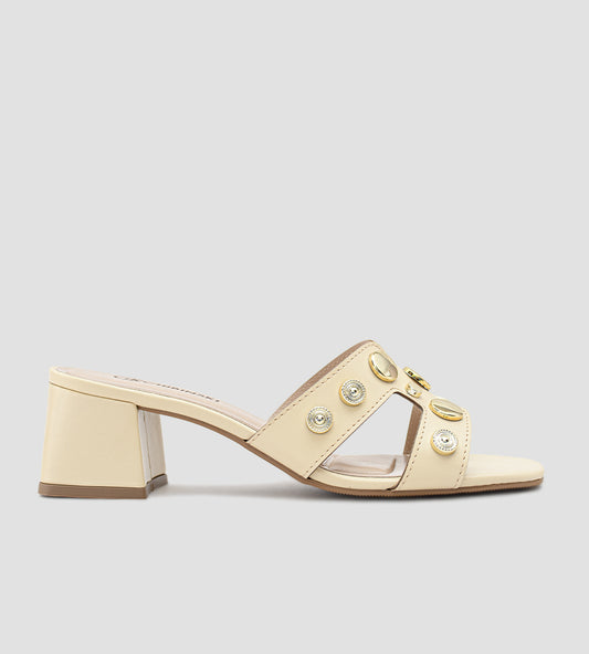 Tamanco Bege Com Enfeites Dourados