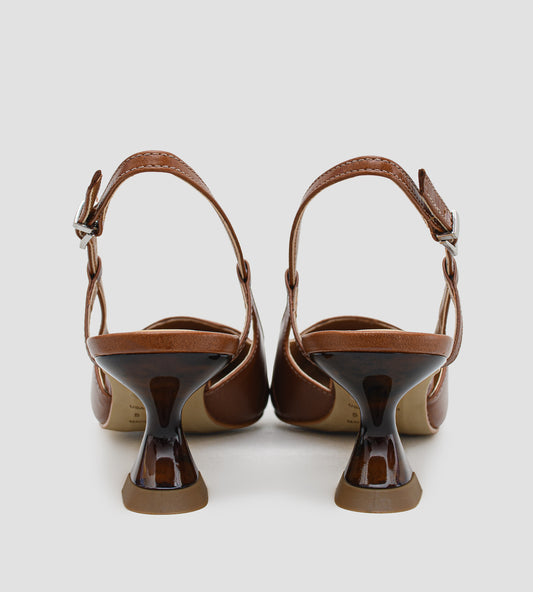 Scarpin Slingback Couro Marrom