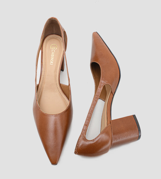 Scarpin Recorte Lateral Couro Marrom
