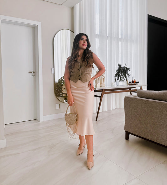 Scarpin Salto Grosso Couro Nude