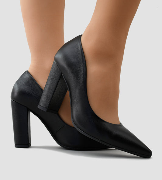 Scarpin Slingback Bicolor Couro Nude e Azul Marinho