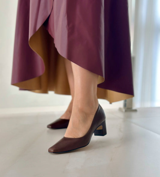 Scarpin Clássico Bico Quadrado Couro Marrom