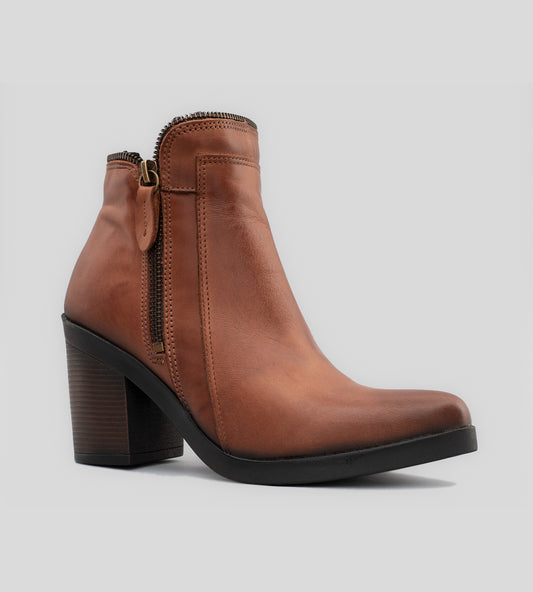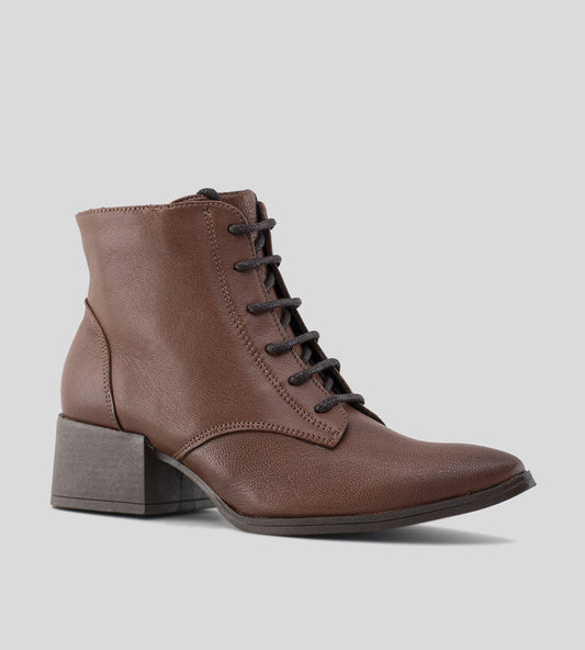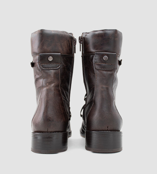 Bota Coturno Tiras de Couro Cano Médio Marrom