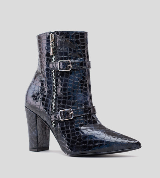 Bota Cano Médio Couro Verniz Croco Azul Marinho CBK