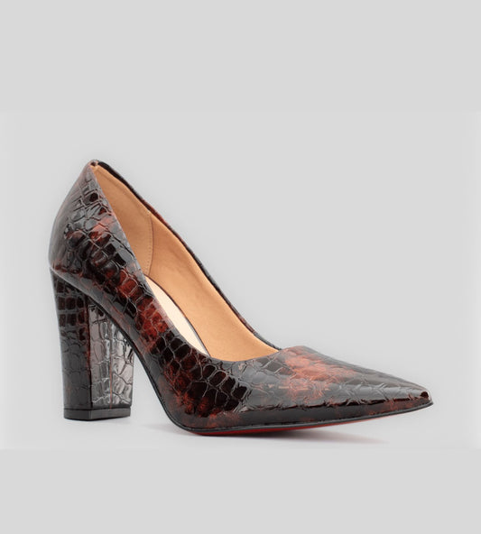 Scarpin Couro Verniz Croco Azul Marinho CBK
