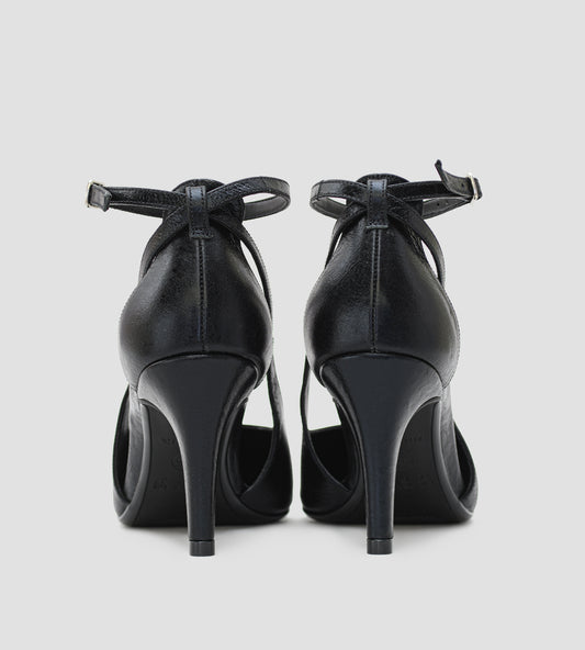 Scarpin Feminino Couro Preto com Tira no Tornozelo
