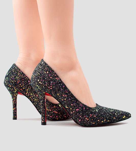 - Adição de cristais ou pedrarias: Aplique brilhantes nos saltos ou laterais para um toque glamouroso.