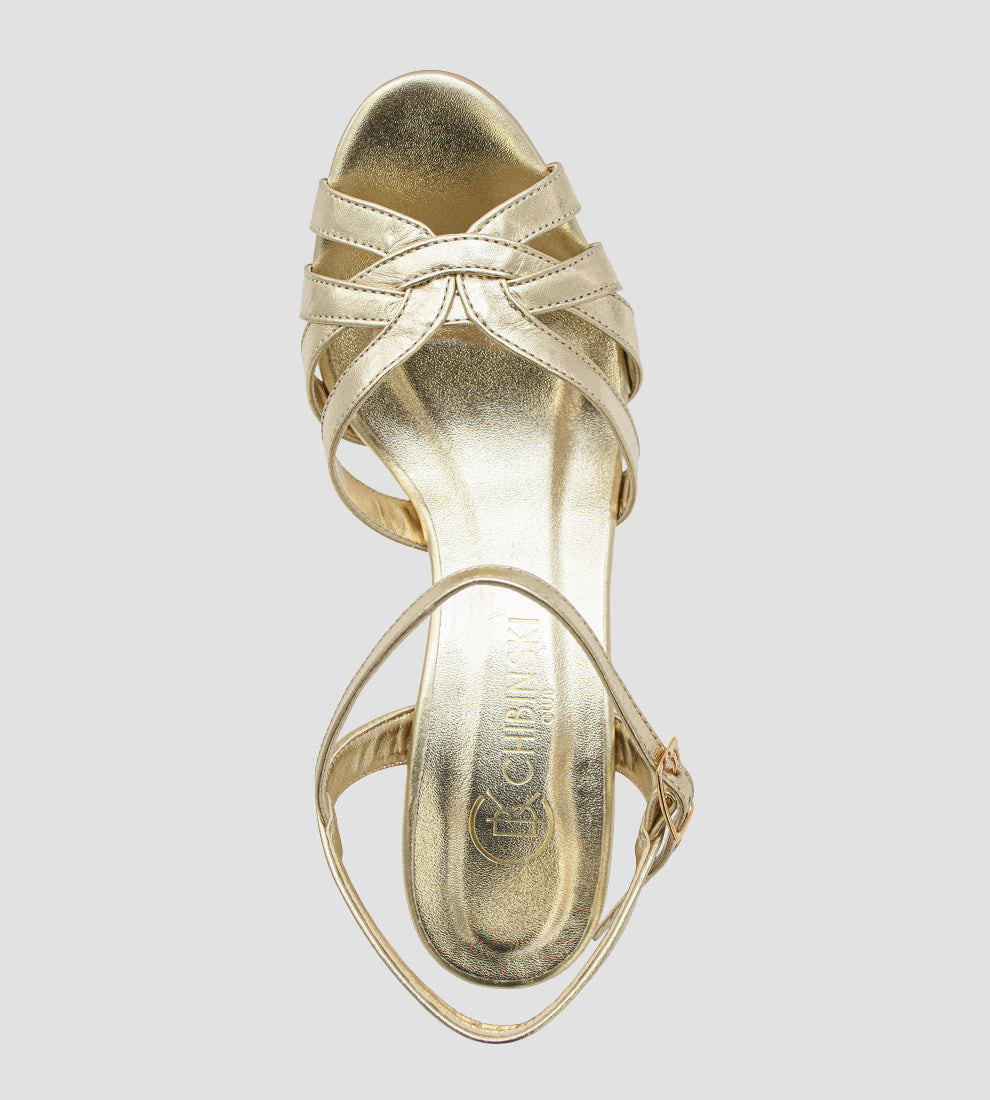 Sandália Festa Couro Dourado Tiras Cruzadas
